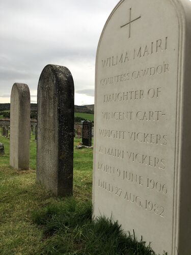 It is honey in colour and heavily patterned making it a good choice for an old churchyard as it blends in from day one.
